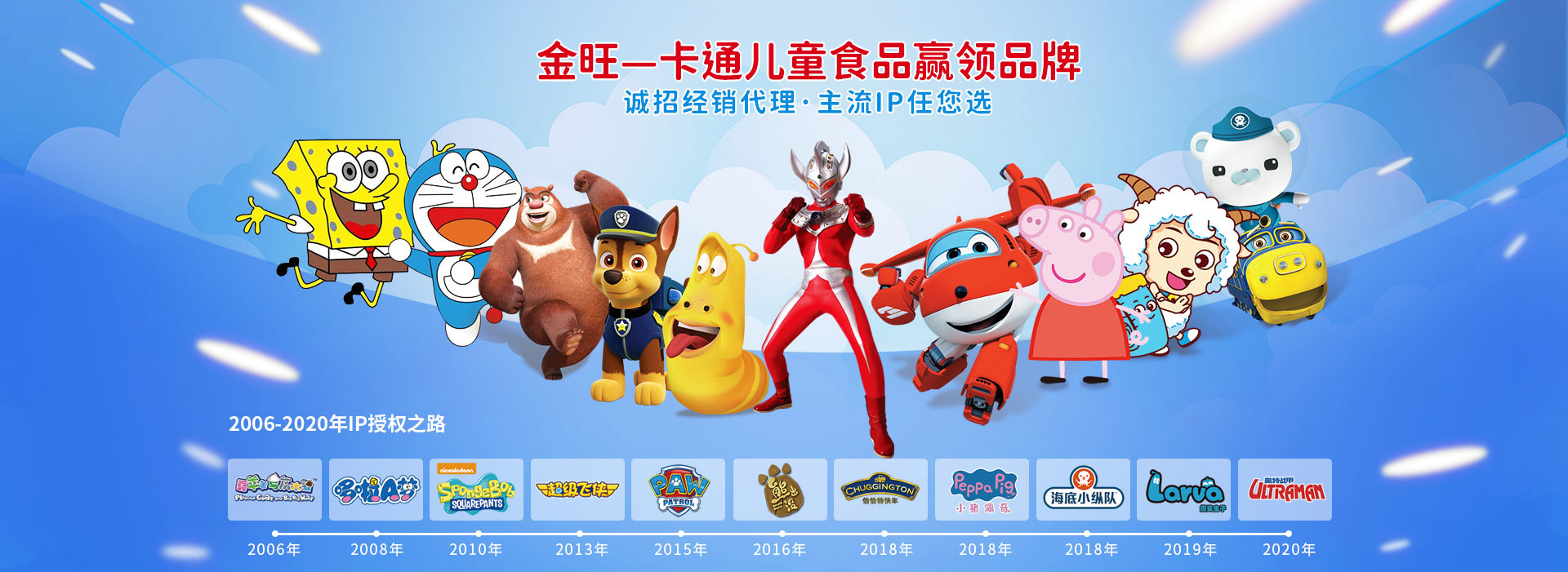 金稻谷連續6年在中央少兒頻道、金鷹卡通電視臺、廣東少兒頻道、嘉佳卡通等電視臺投放廣告,品牌知名度家喻戶曉獲得國內外“喜羊羊與灰太狼”“海棉寶寶”“超級飛俠”“小豬佩奇”“奧特曼”“熊出沒”“旺旺隊”等動畫品牌授權。
